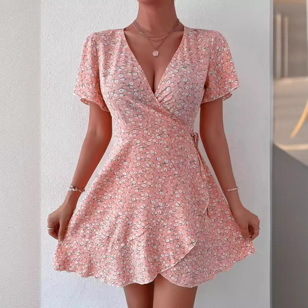 • In Stock, 2025 European and American Cross-border Women's Dress, Pure Color, V-neck, Body-fitting, Sexy Evening Dress - 68603